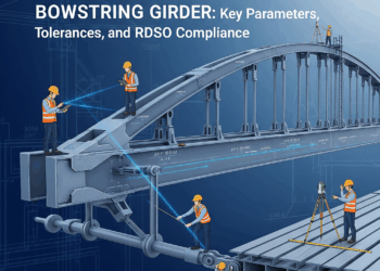 Erection Inspection of Bowstring Girder: Key Parameters, Tolerances, and RDSO Compliance September 17, 2025 Posted by: admin Categories: International, Safety No Comments Introduction The bowstring girder is a critical structural element in bridges and railway projects. Its integrity relies heavily on precision during fabrication, transportation, and erection. Even a minor deviation in alignment or tolerance